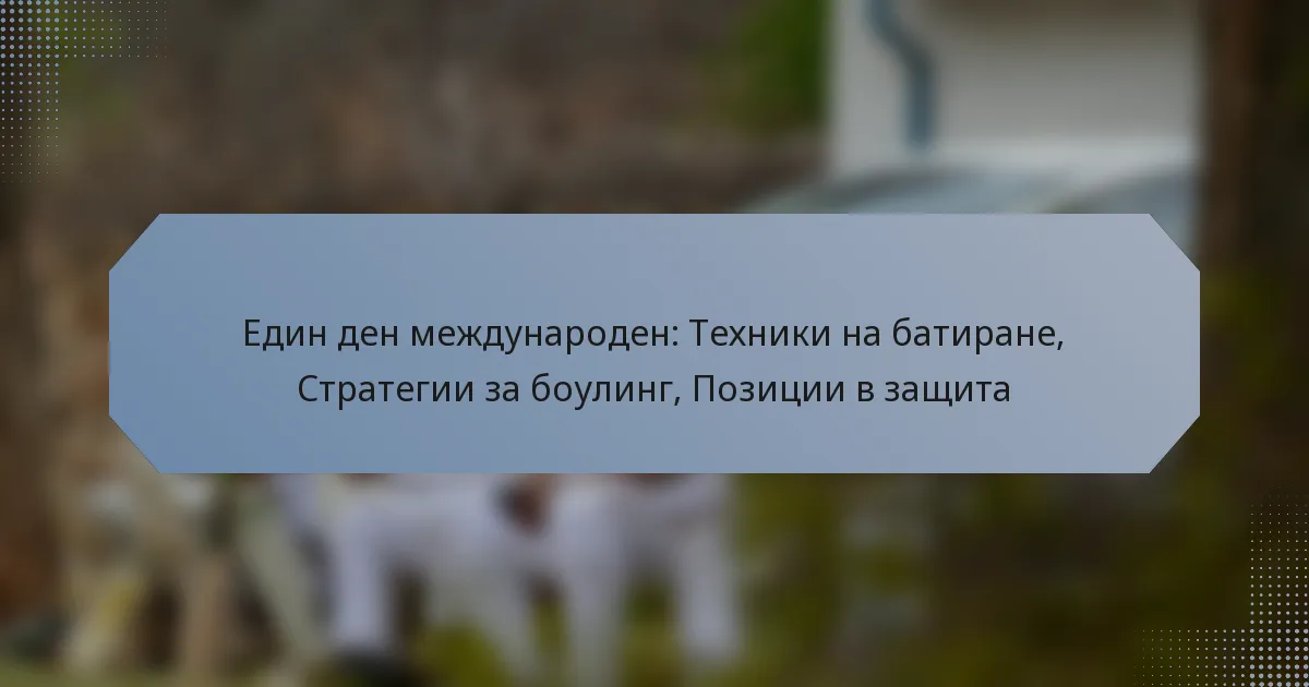 Основните техники на удар в мачовете от един ден (ODIs) се фокусират върху максимизиране на възможностите за отбелязване на точки, докато минимизират рисковете. Ефективният удар комбинира стабилна стойка, прецизен избор на удари и психическа устойчивост, позволявайки на играчите да се адаптират към различни стилове на боулинг и ситуации в мача.